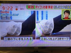 股関節自体は鍛えることが出来ないので、股関節をサポートする周囲の筋肉を鍛えることが有効となるようです。そこで紹介されたのがおしりエクボ体操です。