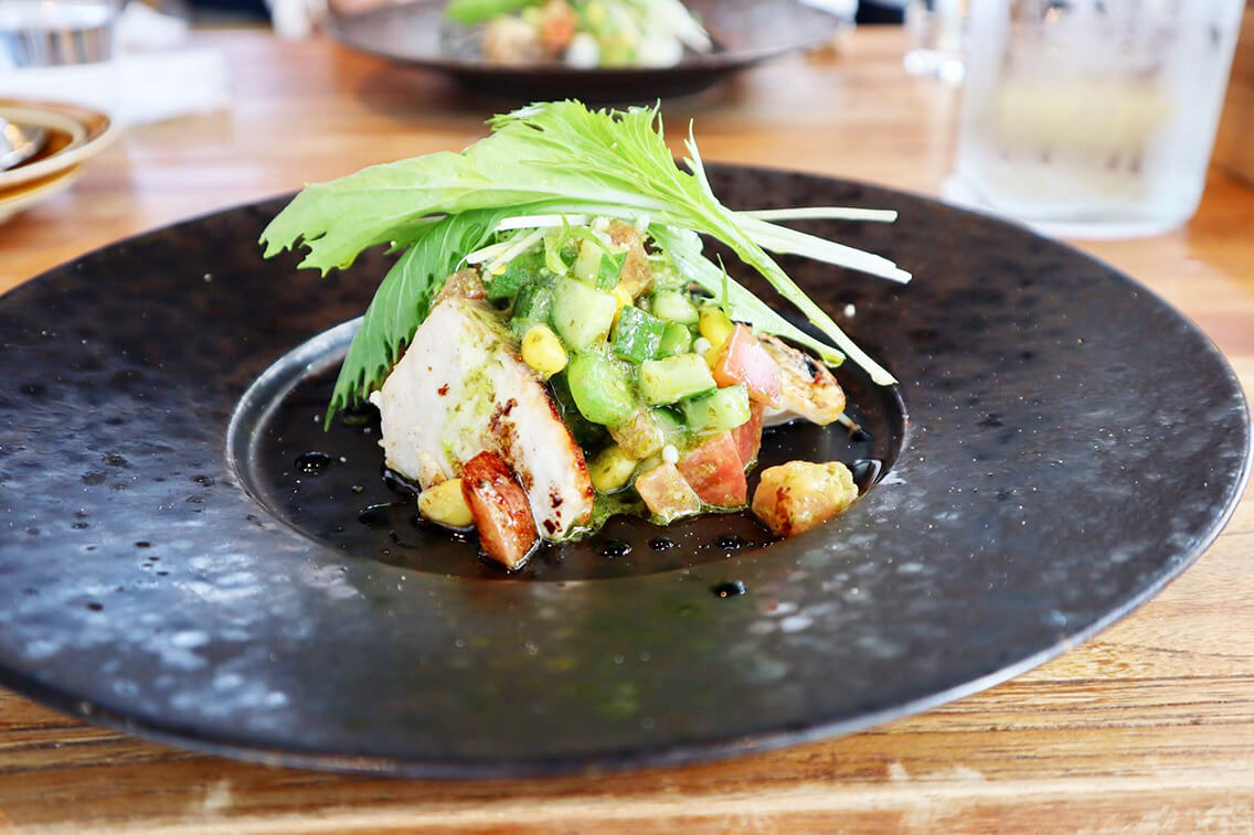 LLOTA(エルロタ)では、シェフが自らの目で厳選した沖縄の食材の数々の料理に仕立ているそうです。店内は開放的で時間がゆっくりと流れていきます。心地いい時間、プレミアムな時間を過ごすことができました。
