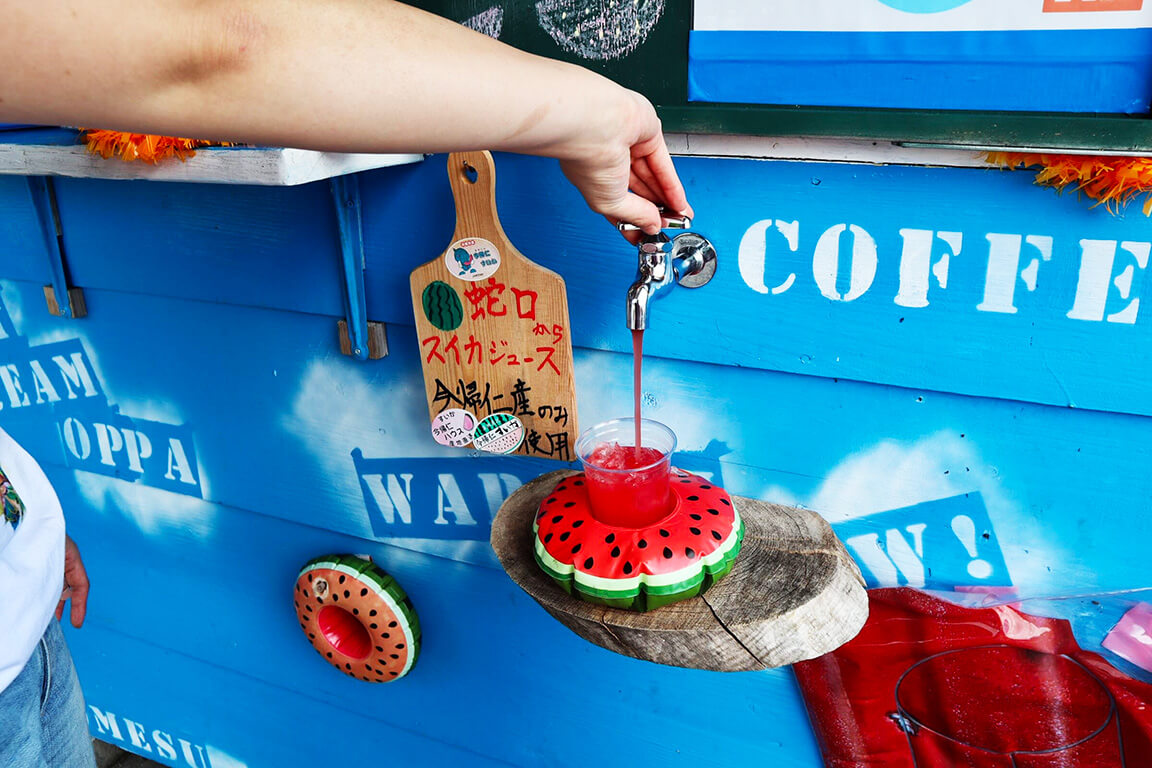 蛇口から自分で注ぐスイカジュース