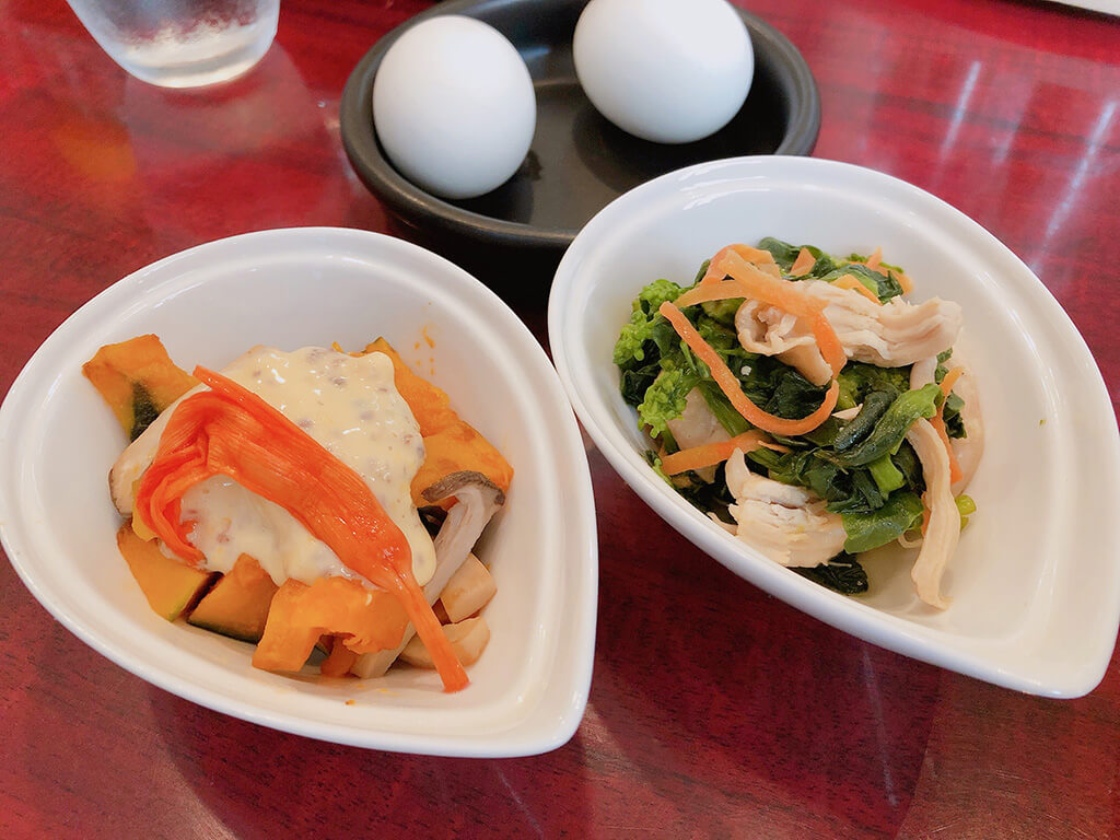 通常あるカレーが7種類、月替わりのカレーが1種類あります。どれを食べようか迷ってしまいます。ゆで卵と大盛りご飯が無料となっていましたが、スープもついていました。
