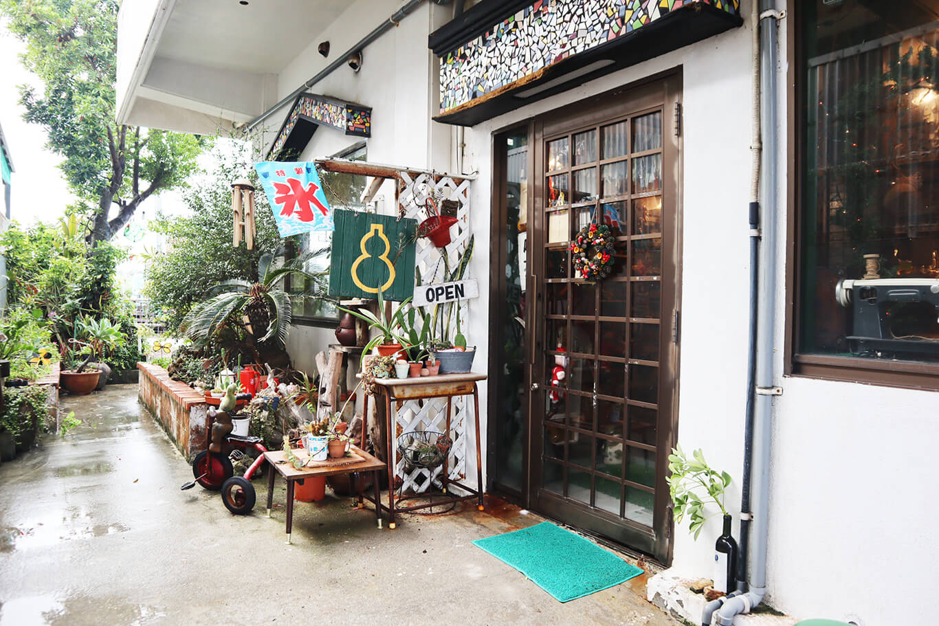 サトウキビ畑が続く道にぽつんと佇んでいて、店内へ入ると別世界が広がります。ドライフラワーやレトロ雑貨が散りばめられていて、女心をくすぐる可愛らしい空間です。