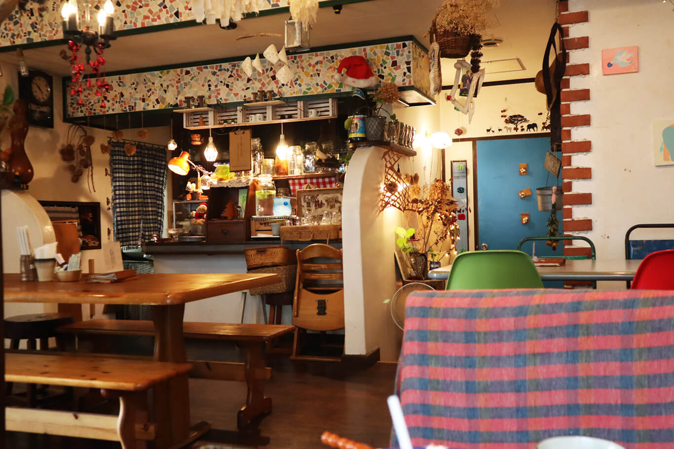 独特の世界観のある店内は、ごちゃごちゃしているようで不思議と落ち着く感じがします。友人と訪れて美味しい食事と楽しいおしゃべりもいいですが、一人ゆったり過ごすのにもオススメなカフェです。