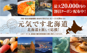 北海道ふっこう割は、10月1日から2019年3月末までの道内を周遊する旅行商品が対象となります。