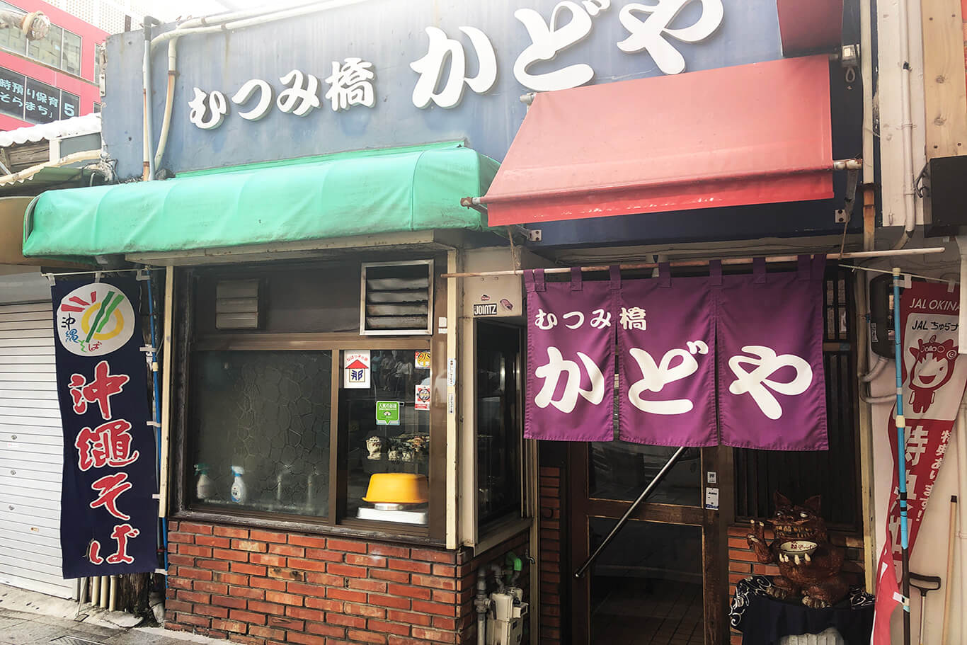国際通りのほぼ中央のむつみ橋交差点近くにある、創業60年以上営業している老舗「むつみ橋かどや」