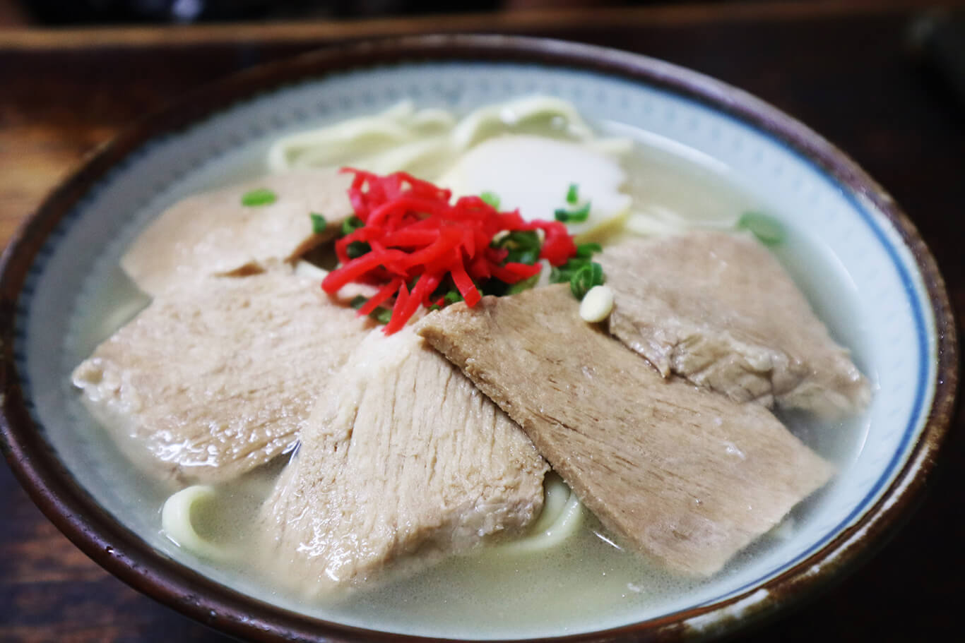 豚骨出しで白濁のスープは、昔懐かしい味がしておばあちゃんが作る、沖縄そばを思い出しました。