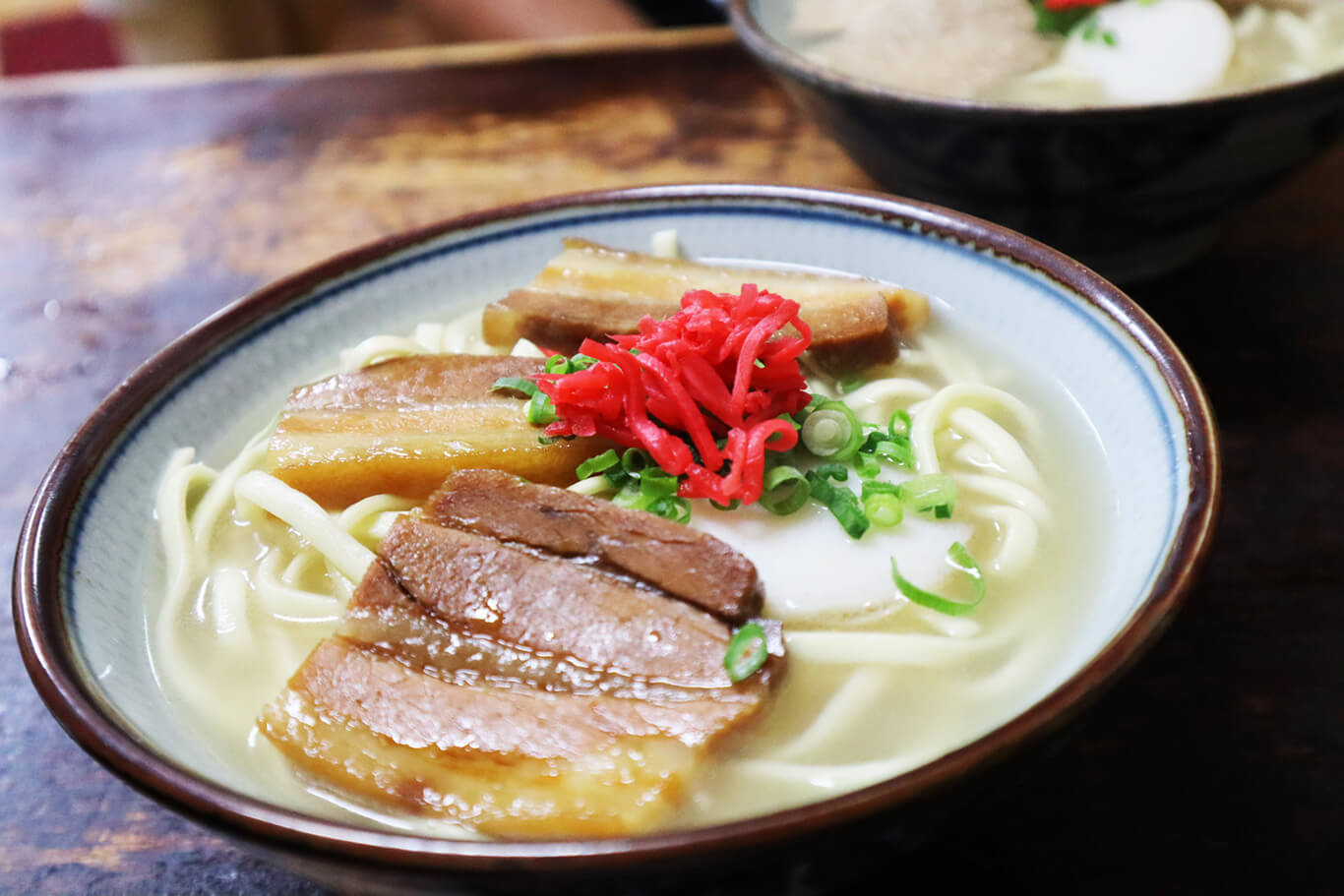 子供のころから、通い続ける老舗のお店です。白濁スープで、じっくり煮込んだお肉、かまぼこ、ねぎ、紅生姜とおなじみのトッピングがのっています。久しぶりに訪れても、昔ながらのシンプルな味は変わりません。