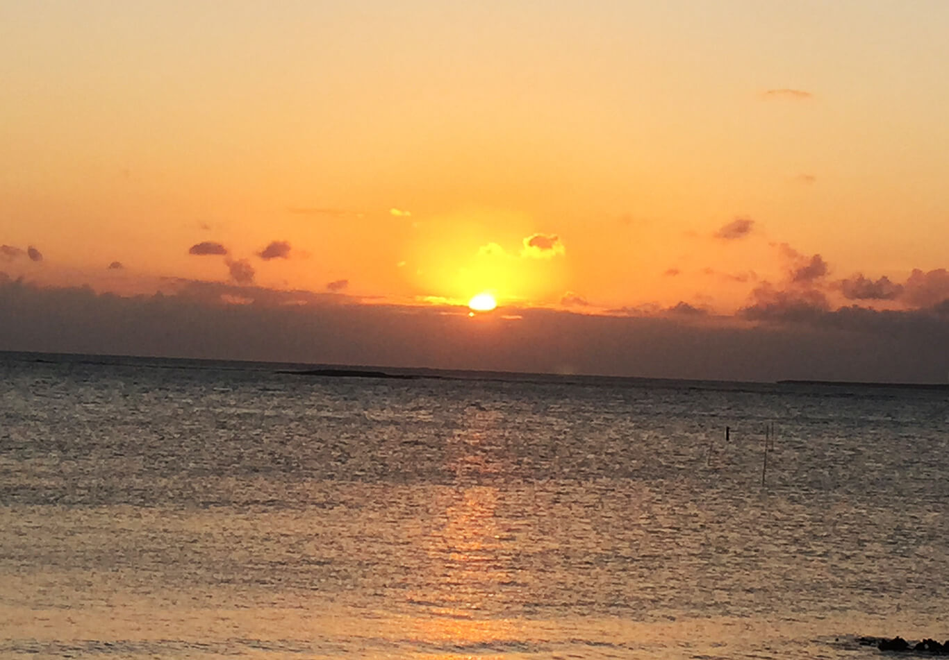 沖縄の冬の日が昇る方角、東~東南東側を向いているビーチや展望台に行くと初日の出が見えますよ。