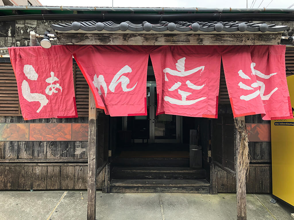 沖縄国道58号線の天久交差点を右折して、およそ300m進むと右側にあります。赤い暖簾と、看板が目印でお店の隣に駐車場もあります。