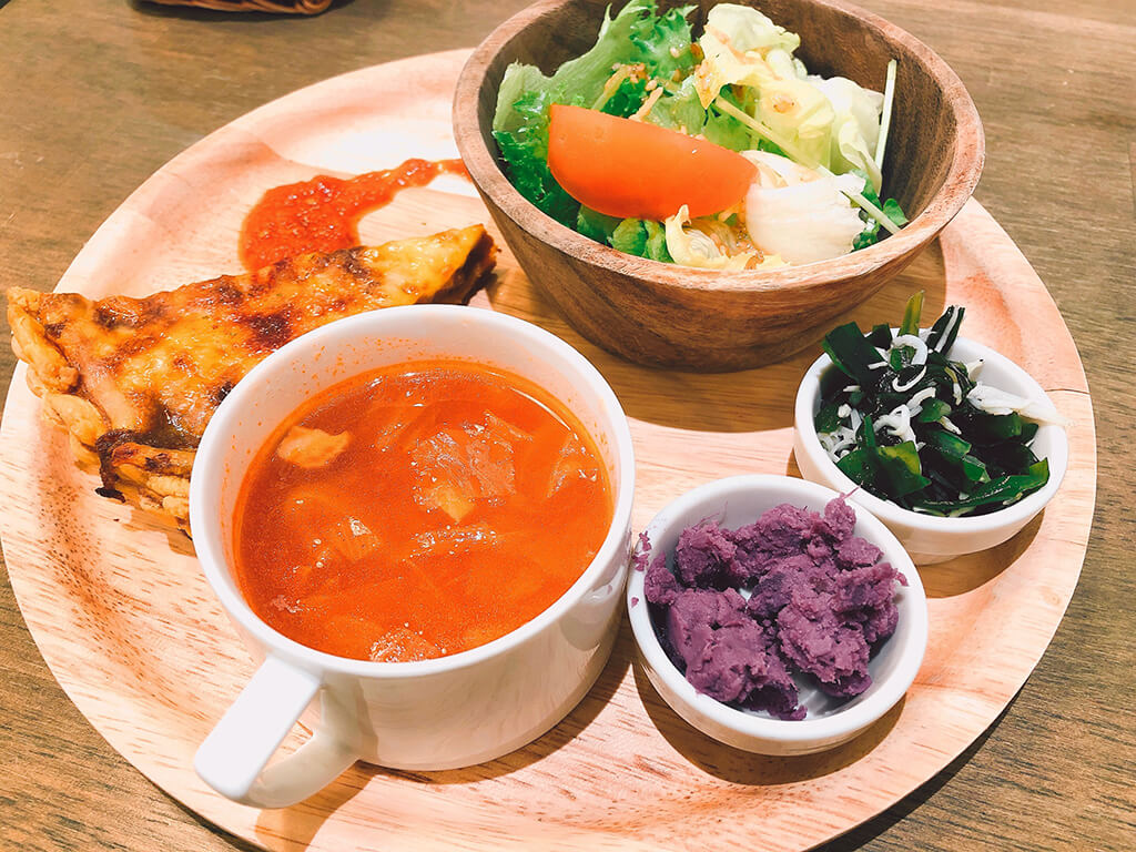 キッシュセットには、2品のデリが付いてます。この日は紅芋サラダとワカメとしらすの和え物でした。